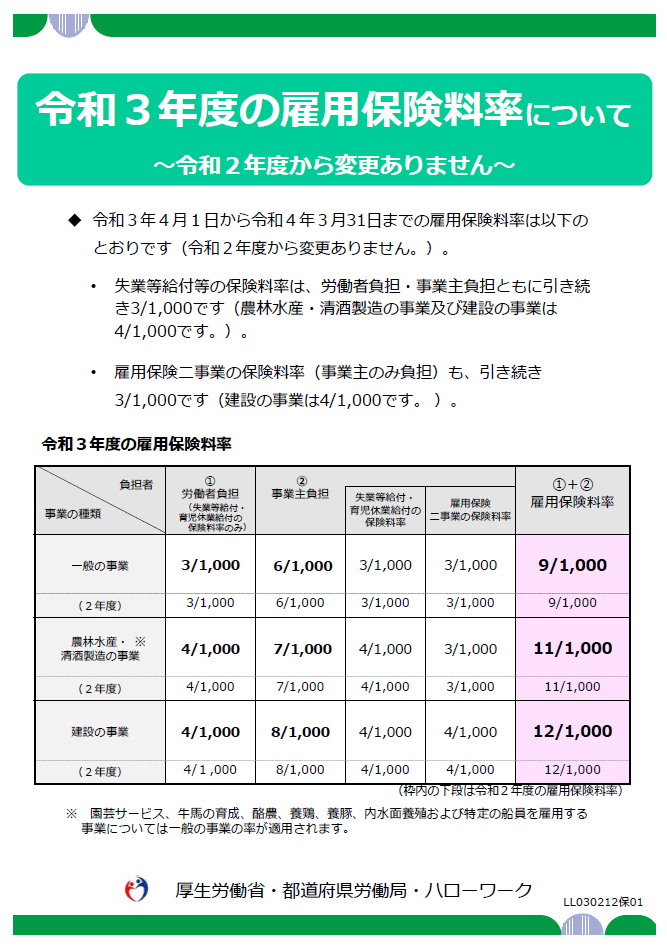 令和3年度の雇用保険料率
